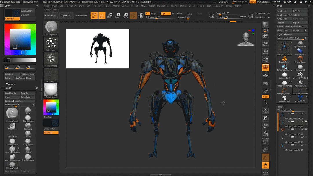 ZBrush는 단순한 UI, 실용적인 아이디어를 기반으로 개발된 세계 최고 수준의 툴킷 및 기능 조합에 따라 현대 디지털 아티스트의 무한한 창의성을 고무시킬 수 있을 뿐만 아니라 (그래서 우리는 – 유일한 한계는 아티스트 자신의 상상력에 있다고 말할 수 있습니다) , 그러나 또한 사용자가 매우 부드러운 작동을 즐길 수 있습니다.
